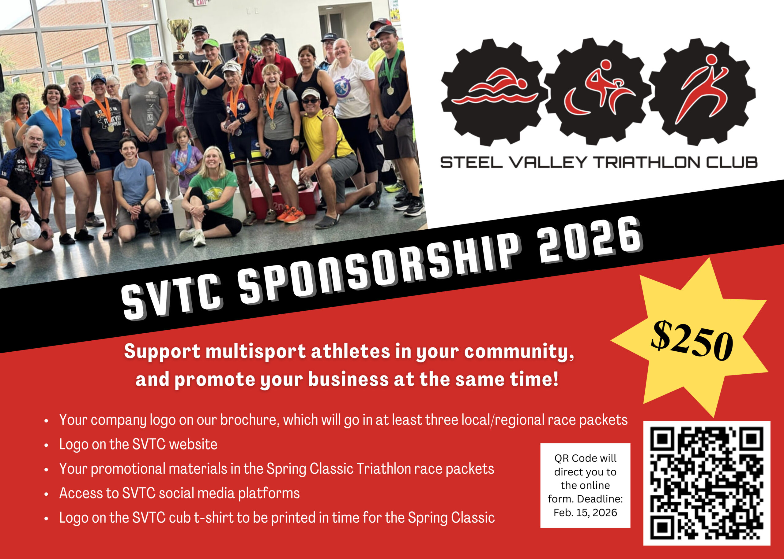 Commit to a $250 SVTC sponsorship for 2026 and receive: